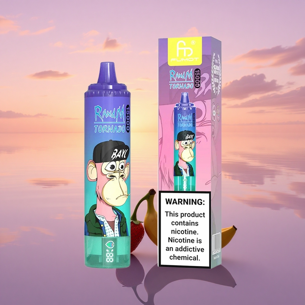 RandM Fumot Tornado 15000 Puffs Strawberry Banana Mesh LCD Rechargeable